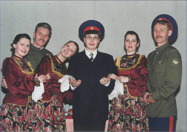 Март 2002 г. Казак Ендовицкий Д.А. в окружении друзей (на фото казачий ансамбль «Держава»; художественный руководитель, Заслуженный артист РФ Золотарев С.Н.).